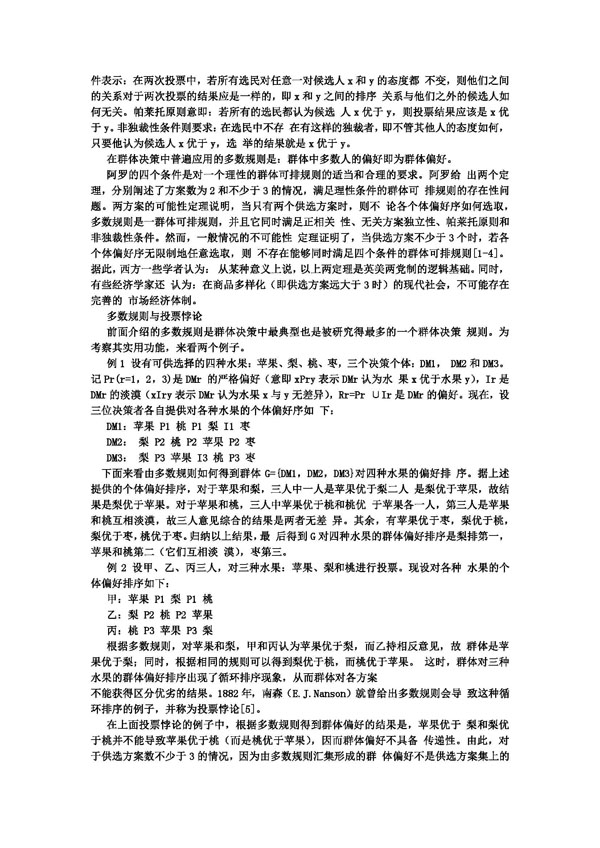 第五产业 >> 论文论著 >> 群体决策的不可能性定理和多数规则