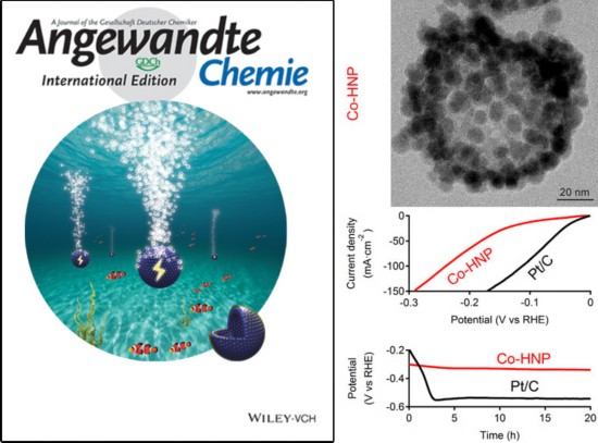 人民网北京56日电 近日,中国科学技术大学教授马明明课题组设计了一种由钴纳米晶自组装形成的纳米空心球,可以作为催化剂在中性水溶液中高效地催化电解水产生氢气,并且可以在大电流密度下长时间稳定工作。该研究成果在线发表在Angew. Chem. Int. Ed.doi:10.1002/anie.201601367)上,并被选为内封面。论文的第一作者是课题组博士生刘炳瑞。