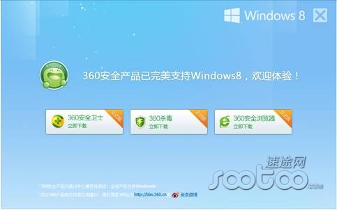目前,Win8用户直接访问360官网,即可下载使用完全兼容Win8360安全卫士、360杀毒及浏览器产品。