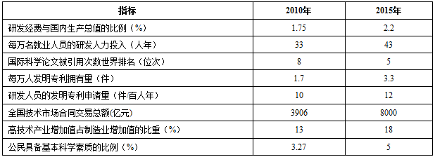 ——原始创新能力显著提升。科学和技术重点领域取得重大突破。国际科学论文被引用次数进入世界前5位,每万人发明专利拥有量达到3.3件,研发人员发明专利申请量达到12件/百人年。